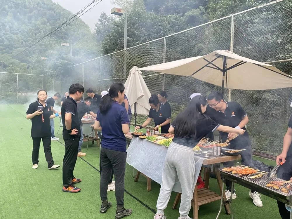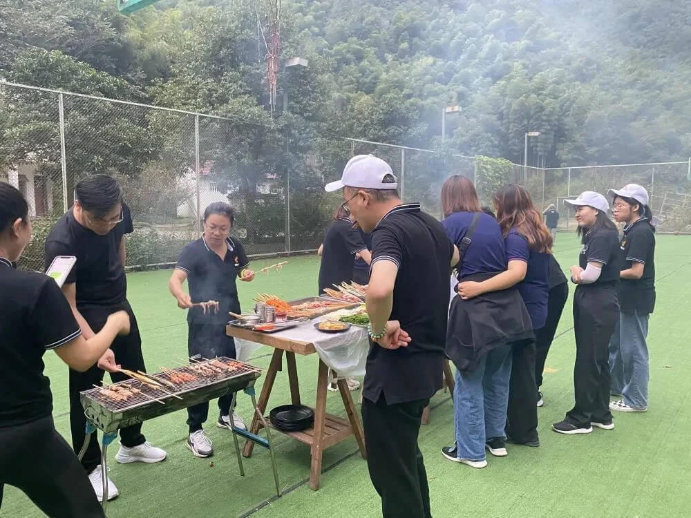 轉眼天色漸暗,下面也到了大家最期待的喝酒擼串環節。大家齊心協力,很快一場可口的燒烤盛宴做好,美食相伴,開懷暢談,好不自在。